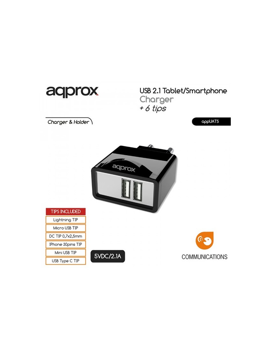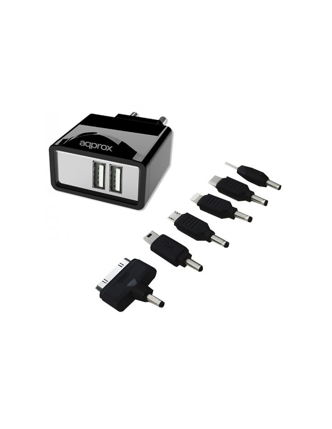 CARGADOR 5V ENCHUFE 2 X UNIVE RSAL + 6 TIPS NEGRO PN: APPUATS EAN: 8435099522461