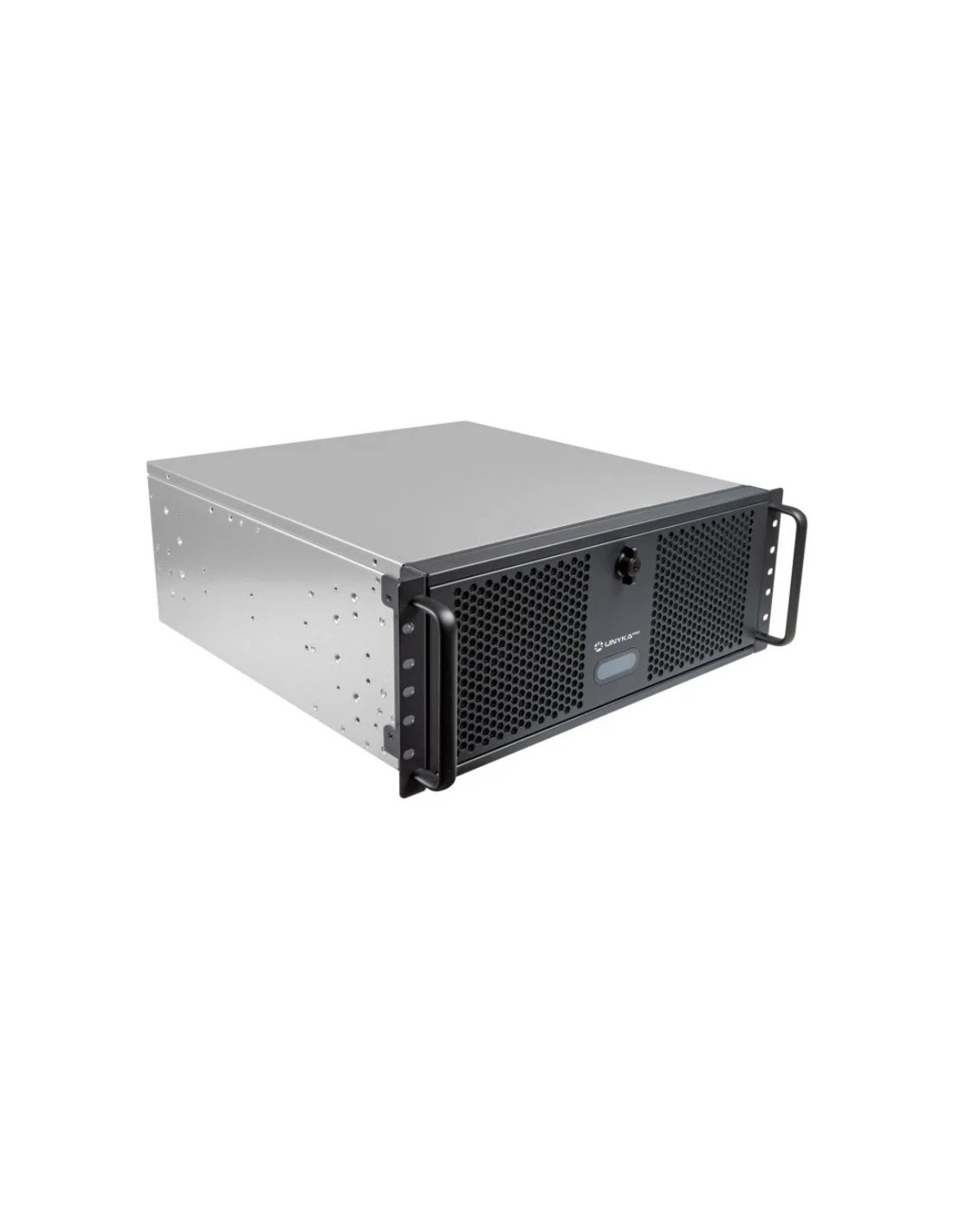 Presentamos la Caja Rack 4U 19" UK4339V de UNYKA PRO. Un chasis profesional para el montaje de CPUs en armarios rack de 19". Una carcasa especialmente diseñada para la instalación de equipos informáticos de uso intensivo como servidores, PC industriales, sistemas de almacenamiento, Data Center, laboratorios, ingeniería, pequeños negocios, Pymes, etc. Dispone de un amplio espacio interno compatible con sistemas de refrigeración líquida de 360 mm (se incluye el soporte), que facilita la circulación del aire por el interior de la caja. Además, incluye cuatro patas para poder colocarlo en posición vertical. Está fabricada en acero de alta resistencia e incorpora un cierre con llave, en su puerta frontal, para mayor seguridad.