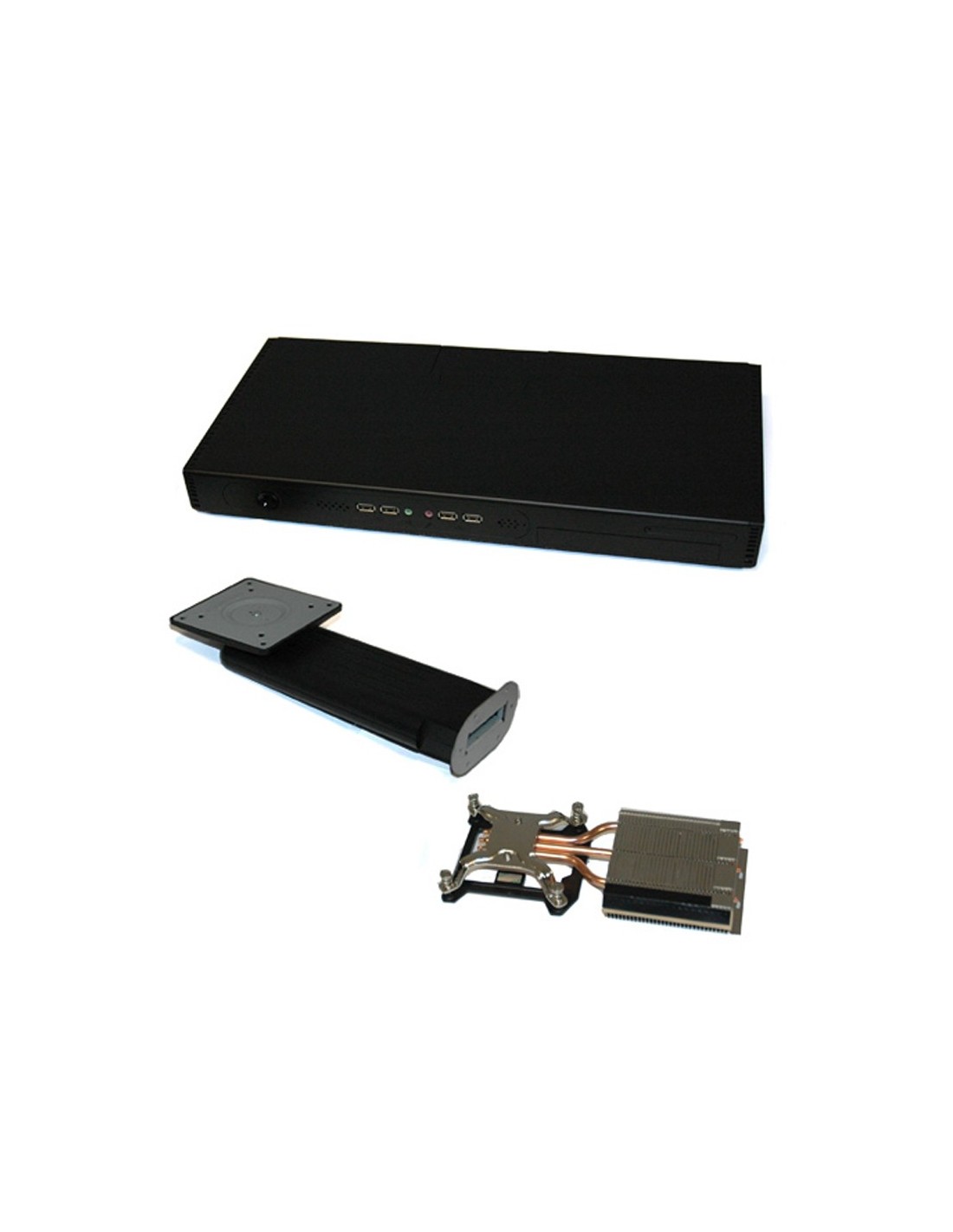 In Win K1 es la alternativa a los equipos "All in one" que suponen un ahorro importante, no solo de espacio, sino también económico, con importantes prestaciones y aplicaciones. En el caso del K1 encontramos las mejores ventajas de este tipo de ordenadores, con notables mejoras que hacen que aumente su "caché" de manera considerable. Este completo sistema incluye un disipador con tres heat-pipes de cobre y ventilador para la CPU, altavoces internos estéreo de 3W, y el brazo para soporte del monitor. Nos ofrece la posibilidad de emplear una pantalla, de entre 19" y 27". El brazo de soporte del monitor permite regular la altura, la posición (horizontal o vertical). In Win K1 Ocupa poco espacio, gracias a su formato ultra Slim de tan sólo 45mm de alto. Se trata de una caja formato Thin Mini ITX que favorece su uso en lugares con poco espacio.