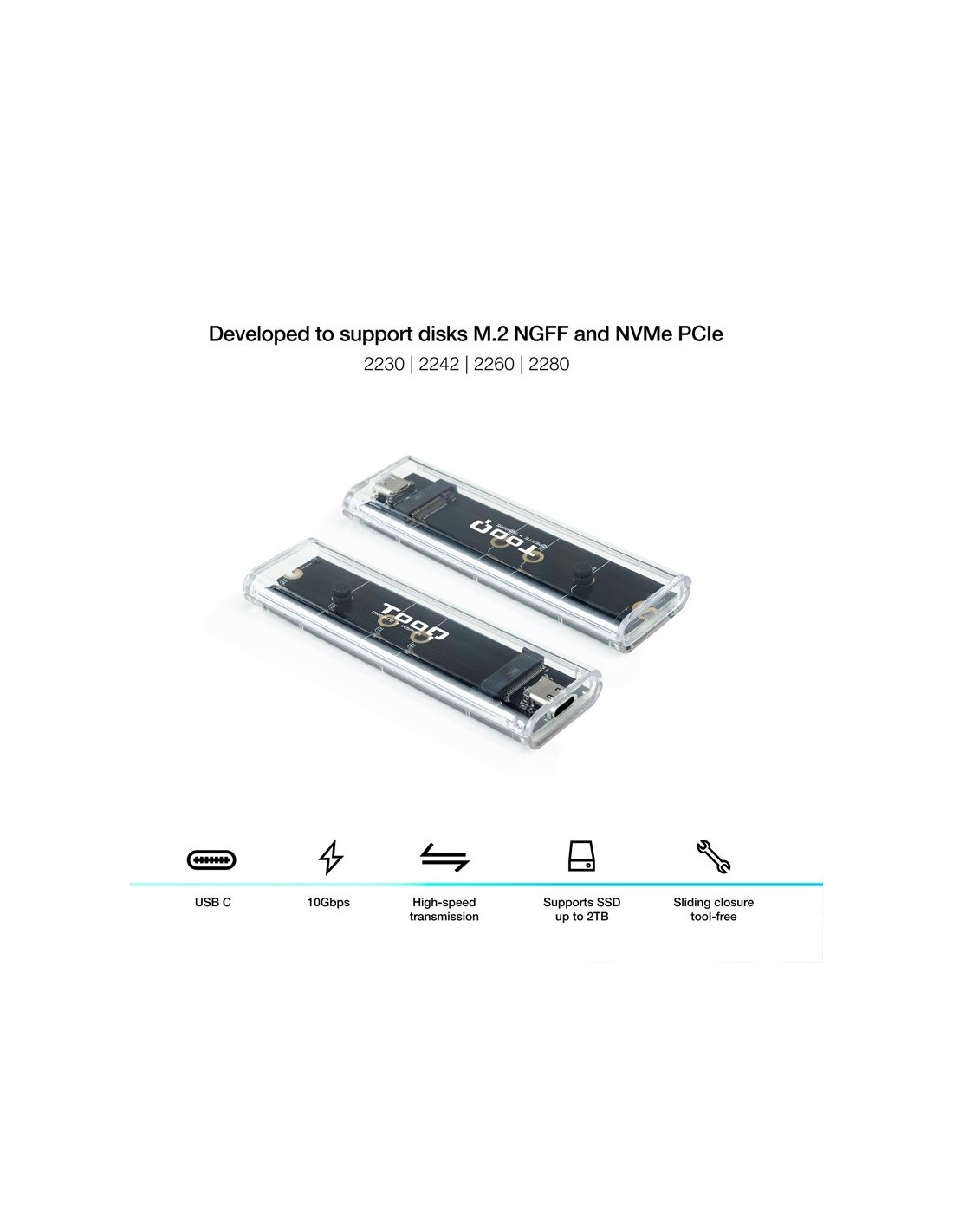 CAJA M.2 NVME USB 3.1 TOOQ TQE-2220 TRANSPARENTE PN: TQE-2200 EAN: 8433281013209
