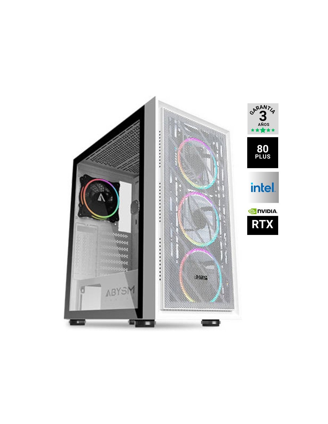 Procesador: Intel Core S-1700 I5-12400F 2.5GHZ, Chipset: Intel H610, Memoria: DDR5 16GB 5600MHZ, Disco duro: SSD M.2 500GB NVME, Vga: RTX 5070 12GB GDDR7 WINDFORCE OC RGB Negra, Fuente 750W/62.5A 80 PLUS BRONZE NEGRO, x4 Ventiladores ARGB, Freedos, Caja GAMING DANUBE KAMP BLANCA ABYSM. PRODUCTO SUJETO A CANON DE 5,33€ QUE SE APLICARA EN FACTURA.