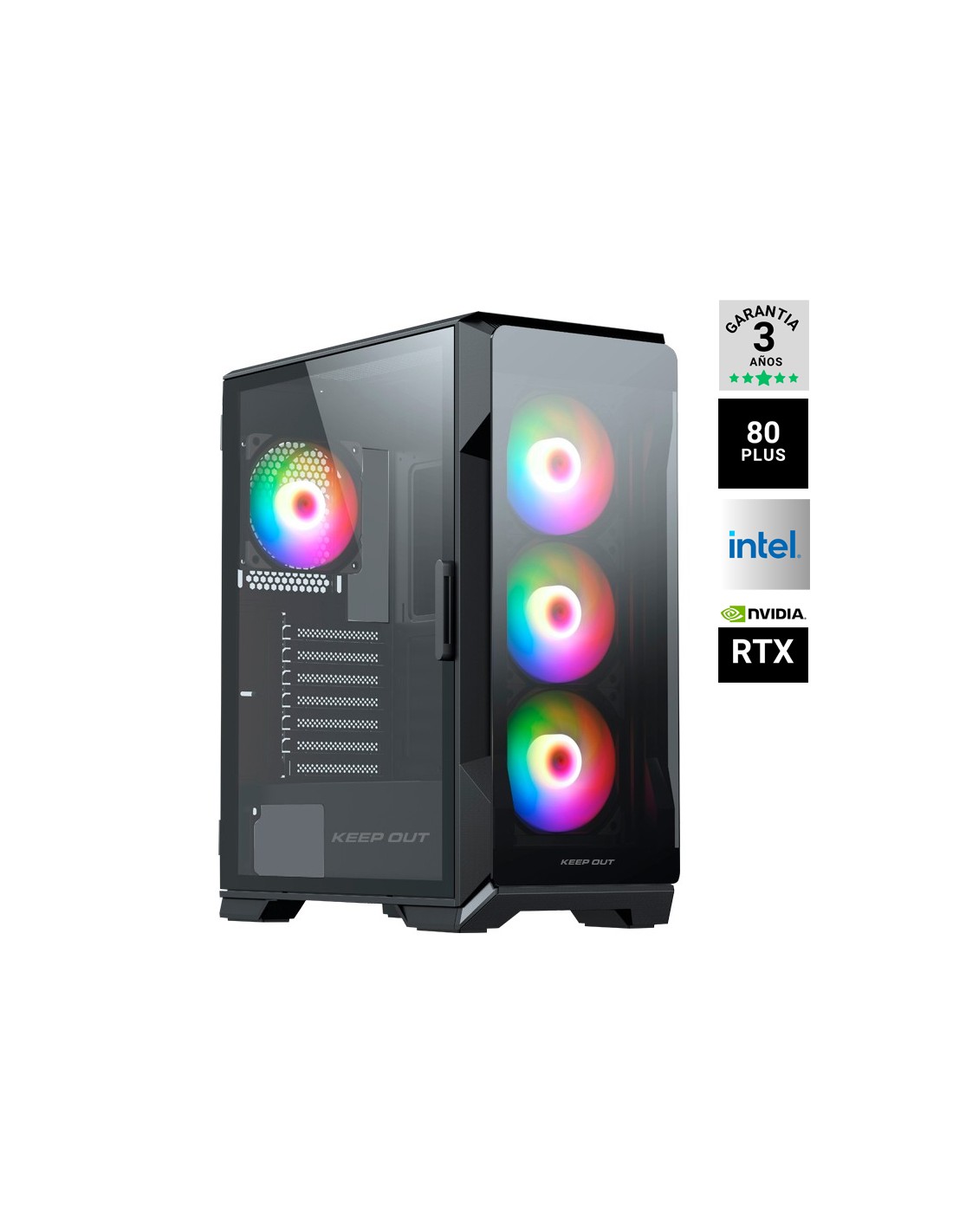Procesador: Intel Core S-1851 ULTRA 9 285 2.5GHZ, Chipset: INTEL B860, Memoria: DDR5 32GB 5600MHZ, Disco duro: SSD M.2 1TB NVME, Vga: Nvidia RTX 5080 16GB GDDR7 OC WINDFORCE RGB Negra, Fuente 850W/70A 80% GOLD RGB NEGRA, x4 Ventilador, Freedos, Caja GAMING KEEP OUT XC-901 Negra. PRODUCTO SUJETO A CANON DE 5,33€ QUE SE APLICARA EN FACTURA.