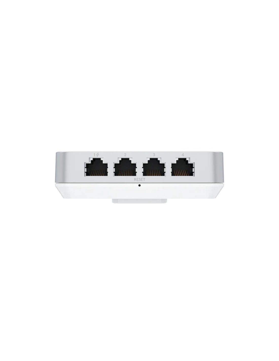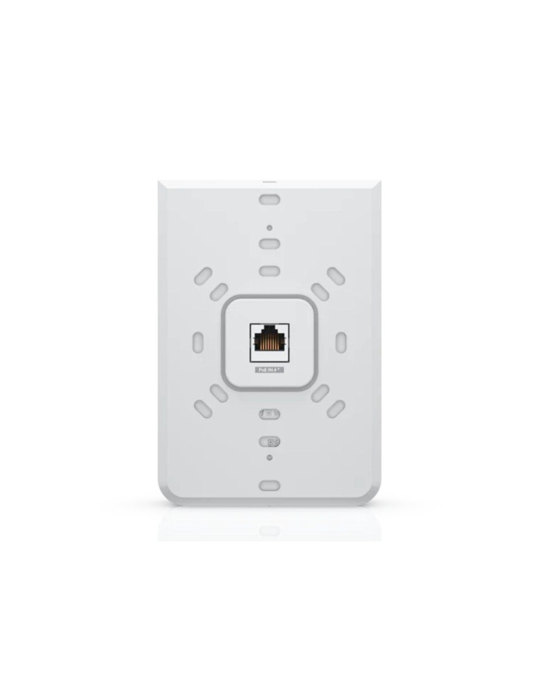 Punto de acceso WiFi 6 montado en la pared con un interruptor PoE incorporado.