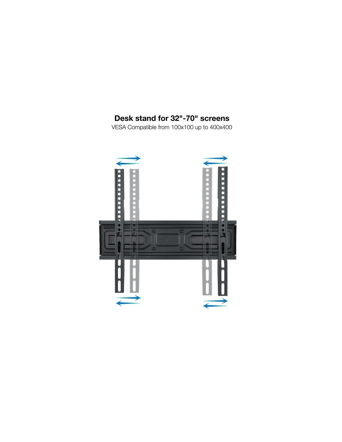 Pantallas soportadas: 32"- 70". Compatible con VESA: 100x100, 150x100, 100x150, 100x200, 200x100, 150x150, 200x200, 300x200, 400x200, 300x300, 400x300, 400x400. Peso máximo soportado de pantalla: 40 kg