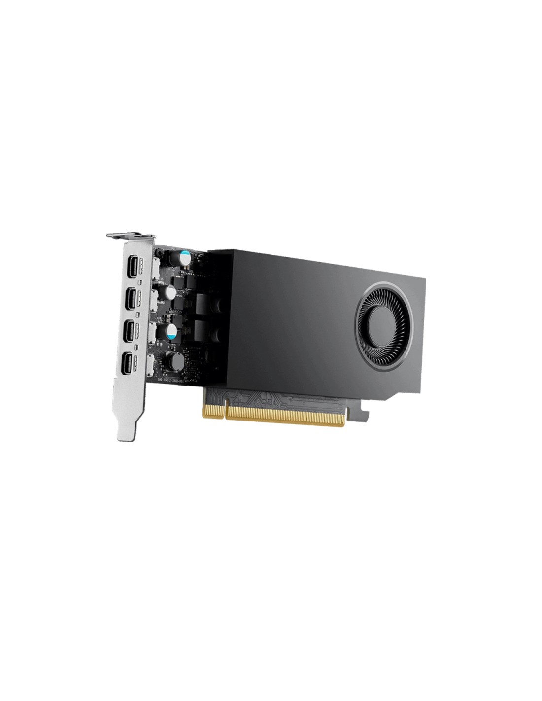 La tarjeta soporta hasta cuatro monitores 5K gracias a sus cuatro conectores mini DisplayPort 1.4a, permitiendo configuraciones de visualización avanzadas. Su diseño de una sola ranura y bajo consumo de energía, de solo 50 W, la hacen perfecta para estaciones de trabajo con limitaciones de espacio y energía.