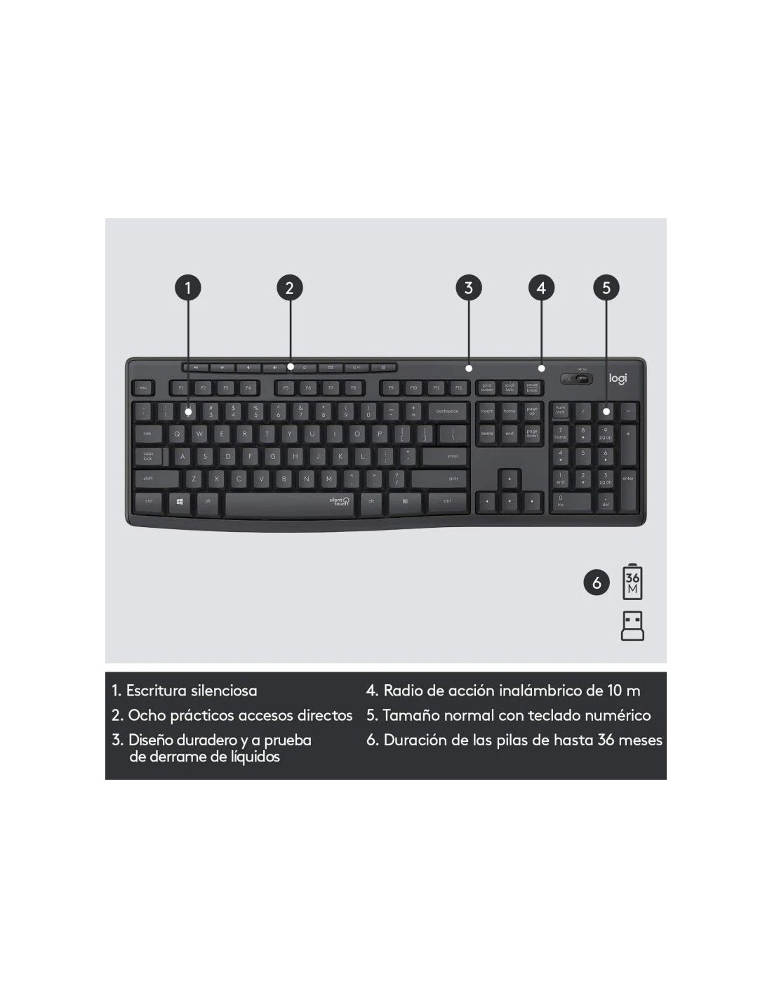- Vida útil de las teclas del teclado: 7 millón de caracteres